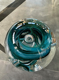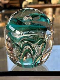 American studio art glass paperweights, a style that emerged from the Studio Glass Movement of the mid-20th century. Departing from traditional, ornate millefiori or lampwork floral designs, these abstract forms prioritize the inherent beauty of the glass medium itself—its unique properties of light, color, and form.
