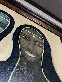 The figures are depicted in a graceful and flowing manner, their bodies intertwined in a gesture of unity and sisterhood. The artist has adorned them with intricate jewelry and patterns, adding to the overall richness and complexity of the composition. The painting's timeless quality lies in its ability to transcend cultural and historical boundaries, speaking to universal themes of beauty, connection, and the enduring spirit of the human condition.