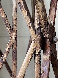 What truly elevates their style is the magnificent, untouched patina of deep, rich rust. This layered, weathered texture speaks to decades of history and exposure, transforming them into sculptural works of art. The authentic, warm, burnt-orange tones of the corrosion contrast beautifully with the cool, austere concrete setting.
