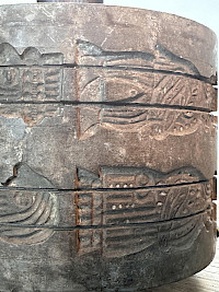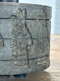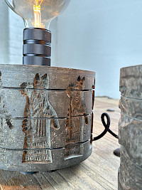 These lamps are truly unique, with a rich history and a striking design. They're crafted from old stone molds, giving each piece a sense of character and age. The detailed carvings on the bases are fascinating and appear to depict ancient figures and scenes, making them much more than just a light source—they're pieces of art.
