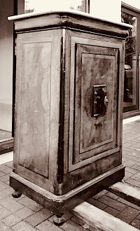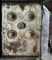 A relic of a bygone era, antique vault-style cabinet commands attention with its imposing presence. Its heavy, dark wood frame and weathered metal accents are beautifully contrasted by a polished, dove-gray marble top, suggesting both strength and luxury. The cabinet is supported by intricately carved ball-and-claw feet, while the front door's ornate floral details and large combination dial hint at the valuable secrets it once held within its secure chamber. This piece is a perfect blend of industrial utility and decorative artistry.